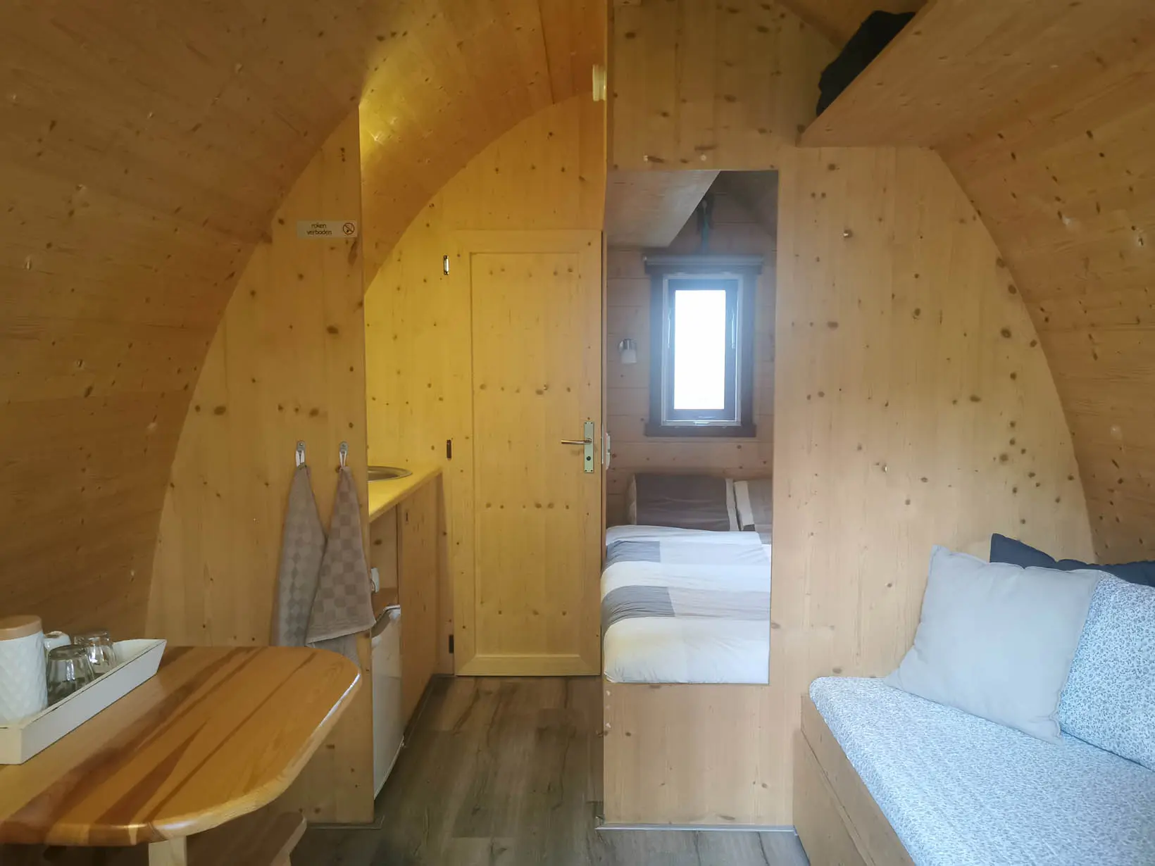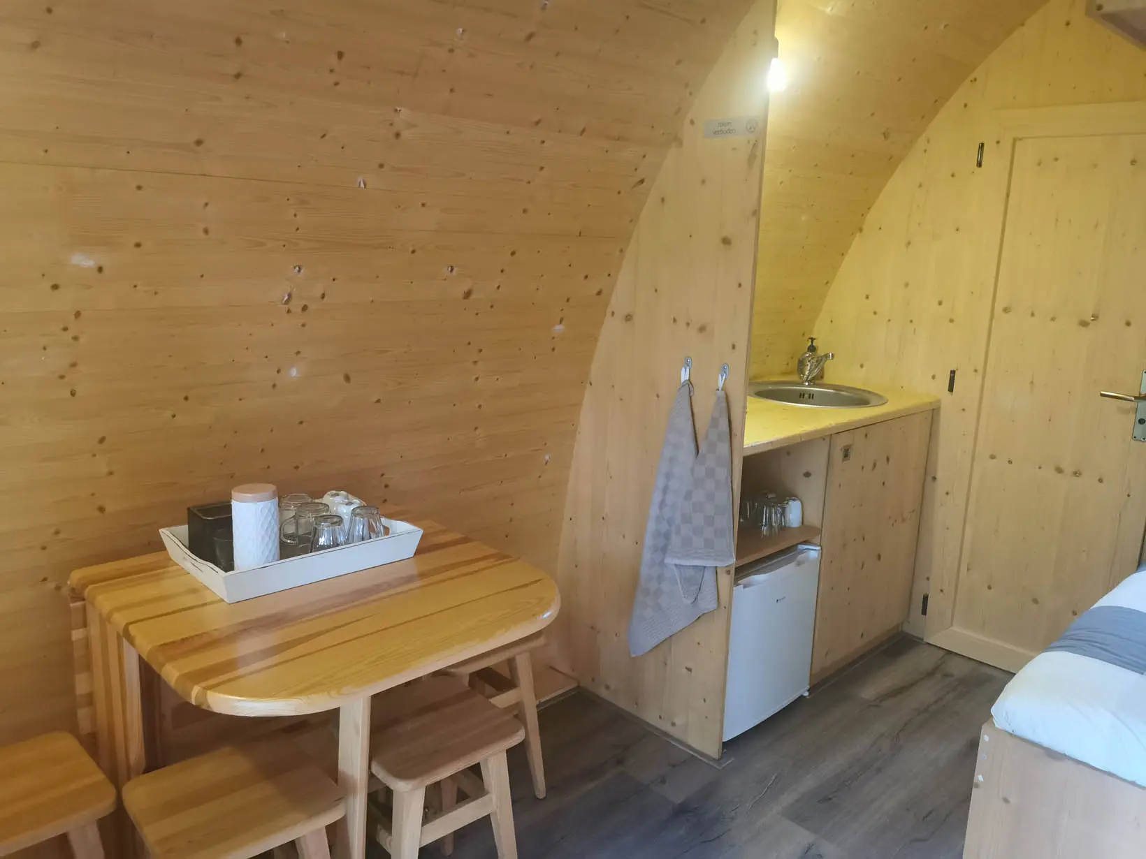 De MegaPod is geschikt voor maximaal 4 personen en beschikt over vaste bedden. Dekbedden en kussens zijn aanwezig. Daarnaast heb je de beschikking over een eigen toilet. Douchen kan in één van de nabijgelegen sanitairgebouwen.